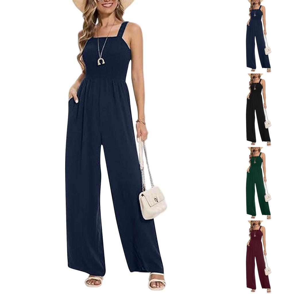 Women's Fashionable Casual Relaxed Square Neck Sleeveless Wide Leg Jumpsuit