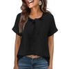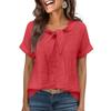 Women's Vintage Loose Fit Cotton Linen Blend Top With Bow Detail And Three Quarter Sleeves