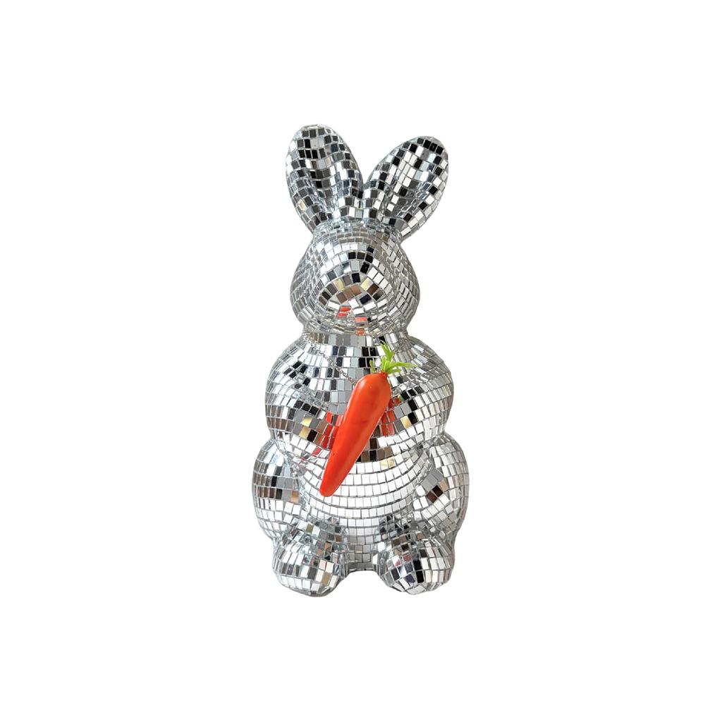 Disco Bunny balls are made of high-quality styrofoam, and decorated with 5mm mirror glass tiles with sparkling and shimmering effects, , light weight, and high glossy surface reflectivity,which are individually glued and handmade(During the mail transportation,maybe some of them will fall off.)