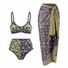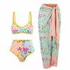 Women's 3-Piece Bikini Set Two-Sided Wearable Reversible Swimsuit with Adjustable Top, High-Waisted Bottom & Sarong, Quick-Dry Fabric