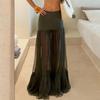 Elegant French Mesh See-through Long Skirt in Solid Color