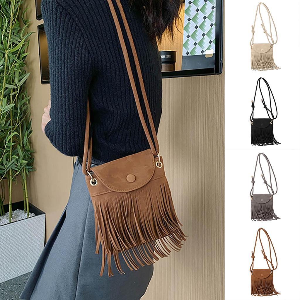 Suede Fringe Retro Casual Crossbody Single Shoulder Small Square Women's Bag Do you want a crossbody bag that is both fun and practical? Our bags are carefully designed to make daily carrying easier, while adding fun and festive atmosphere to your appearance. This bag is perfect for daily use or seasonal outings, suitable for any outdoor activities. This is the perfect combination of practicality and personality! PRODUCT Crafted from quilted fabric featuring a stylish stitched pattern Made of premium cotton-poly blend, combining the softness and breathability of cotton with the durability and easy care of polyester. Easy-care: Safe for machine washing; use gentle cycle with cold water, dry recommended. Avoid .