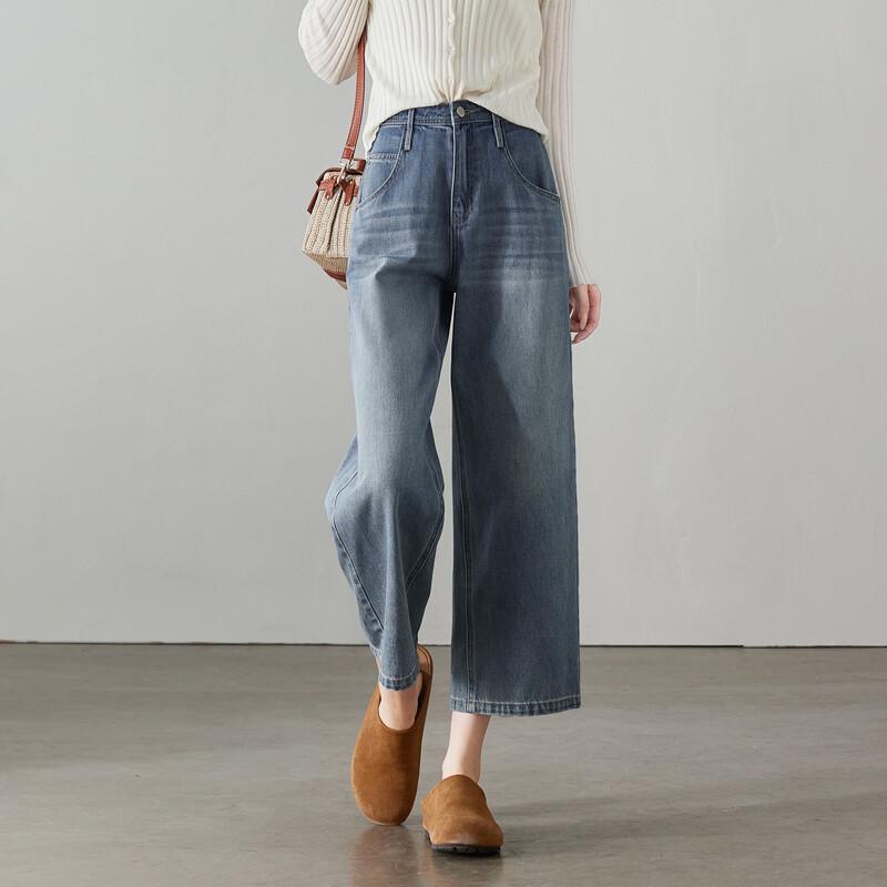 SOFSIL 2026 Spring Women's High-Waist Wide-Leg Cropped Jeans