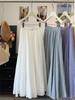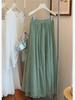 Spring New Gentle Style Ice Silk Cotton Linen A-line Pleated Long Skirt - Women’s High Waist Slimming Drape with Large Hem.