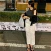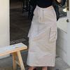 Korean Chic 2026 Spring/Autumn Casual Back Slit Double Pocket Midi Skirt for Women
