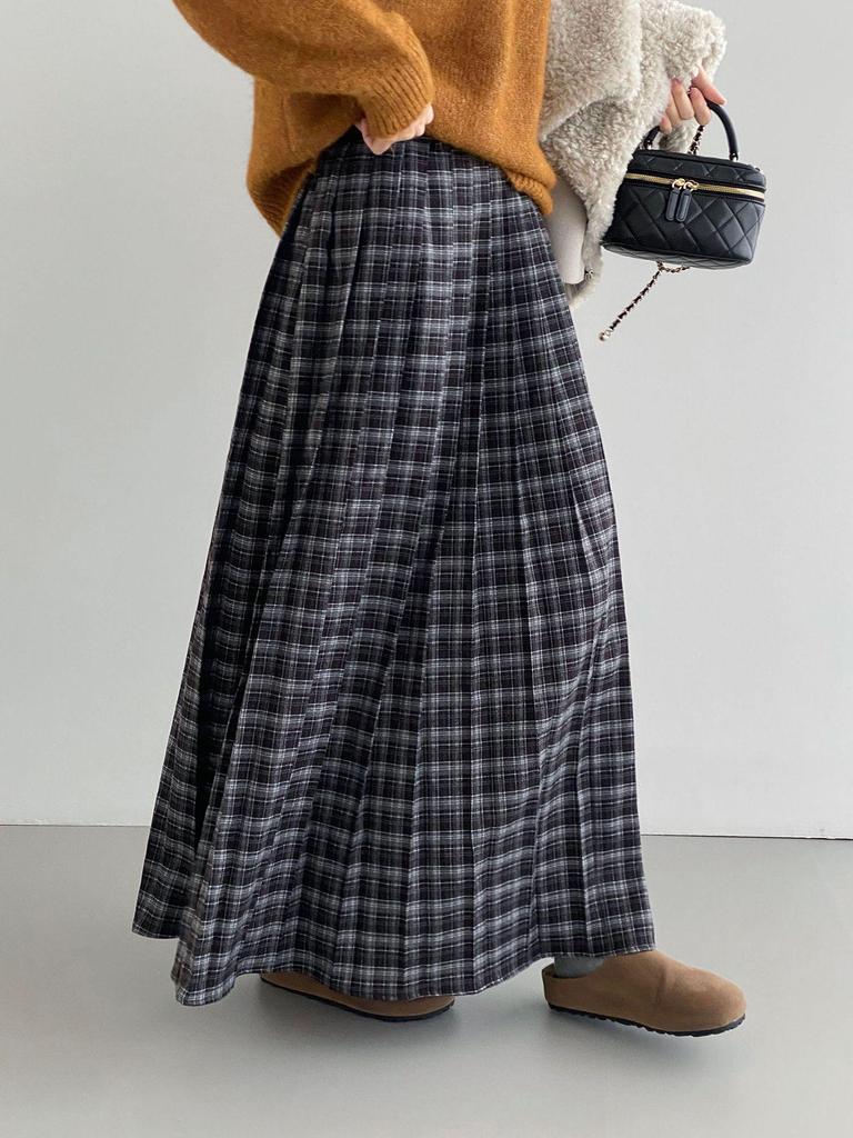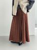 Korean Retro Plaid High Waist Midi Skirt - Women's Versatile A-Line