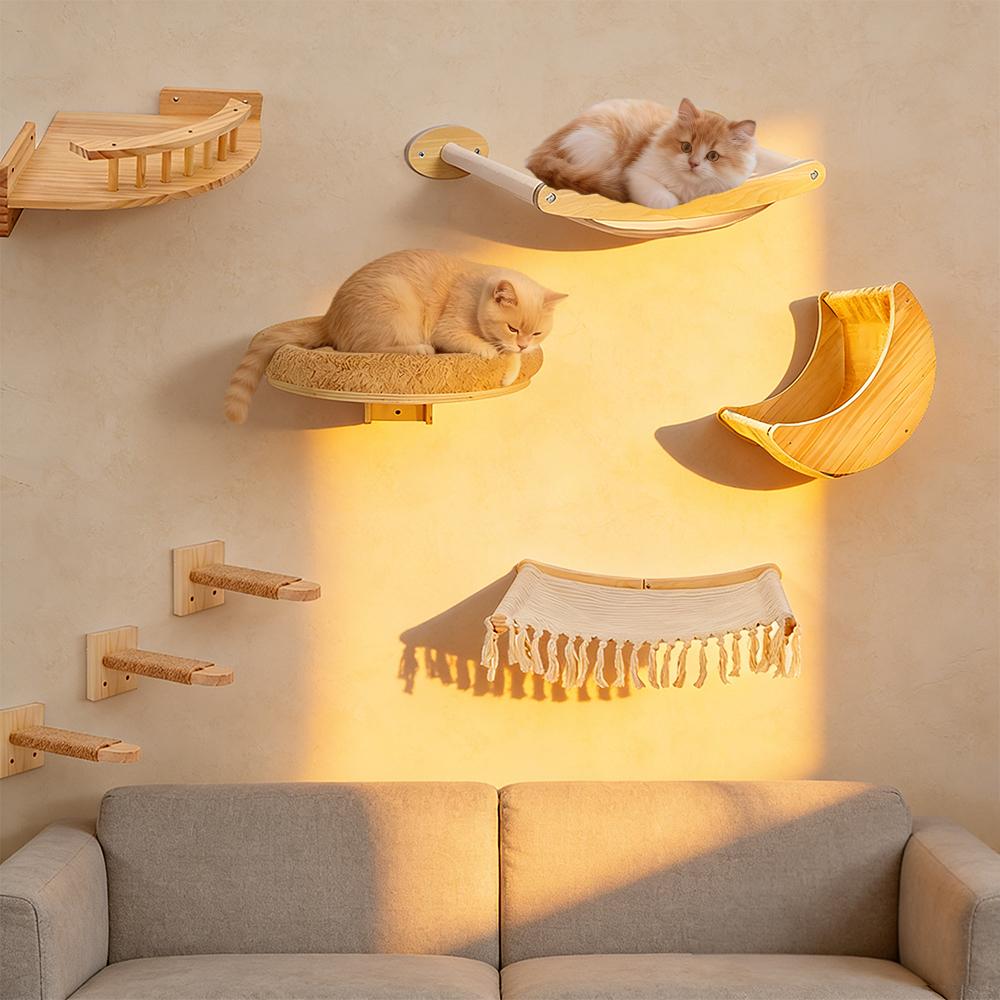 Cat Wall Climbing Shelves ScratcherFurniture Wall Mounted Bed Cat Wall Shelves & Hammock for Indoor Cats Home Decor Accessories