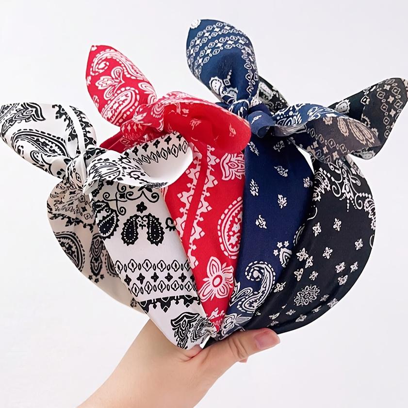 1pc New Simple Retro Fashion Paisley Flower Bow Rabbit Ear Wide Bright Color Fabric Headband Bundle for Women hair accessories