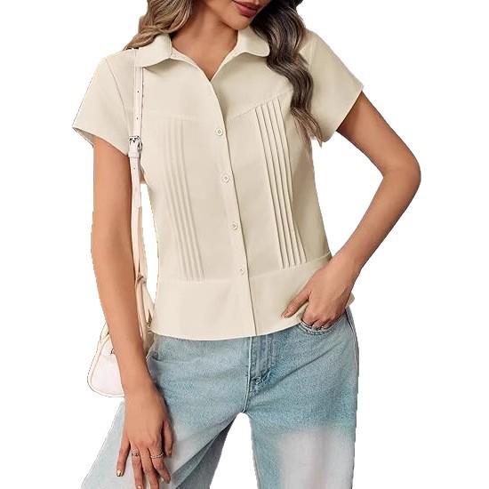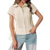 2026 Spring/Summer Retro Slim Solid Color Lapel Short Sleeve Women's Shirt
