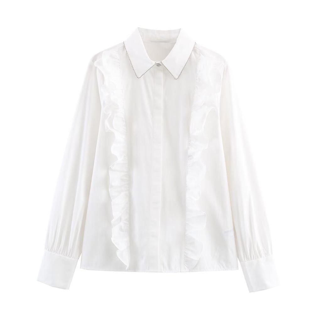 This stylish shirt combines the elegance of European and American fashion trends for Winter 2025. Made from high-quality polyester, it offers a smooth and comfortable wear. The shirt features a unique beaded lapel that adds a touch of sophistication to any outfit. Its loose fit ensures relaxed yet fashionable wear, while the long sleeves make it ideal for cooler weather. The tailored neckline provides a clean and polished look, making this shirt a versatile addition to your winter wardrobe.