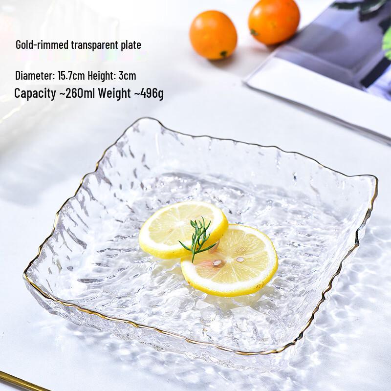 Hammered Glass Square Plate with Gold Rim