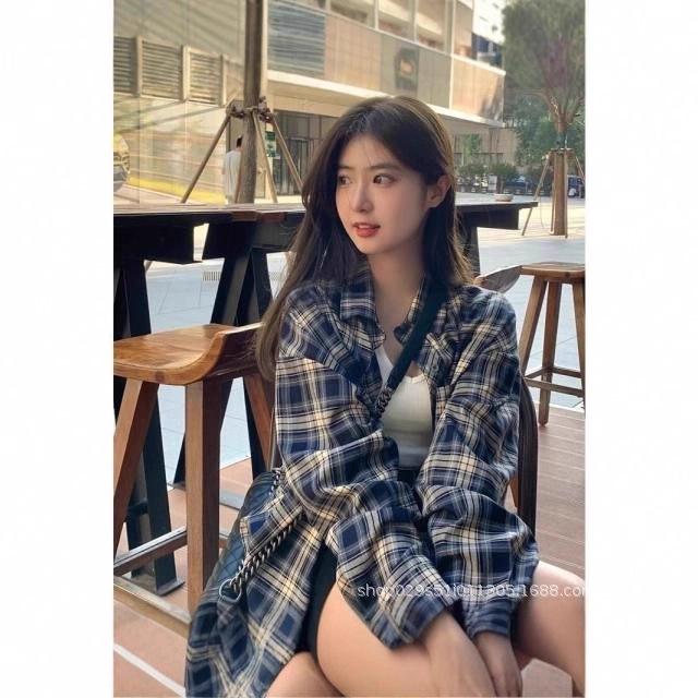 Embrace a touch of retro Korean style with this women's long sleeve plaid cardigan, perfect for both spring and autumn. Crafted from soft polyester, it offers a loose fit for comfortable layering. The plaid pattern adds a classic charm, while the turn-down collar enhances its vintage appeal. Complete with practical pockets for added convenience, this cardigan is versatile and stylish for any casual outing.
