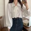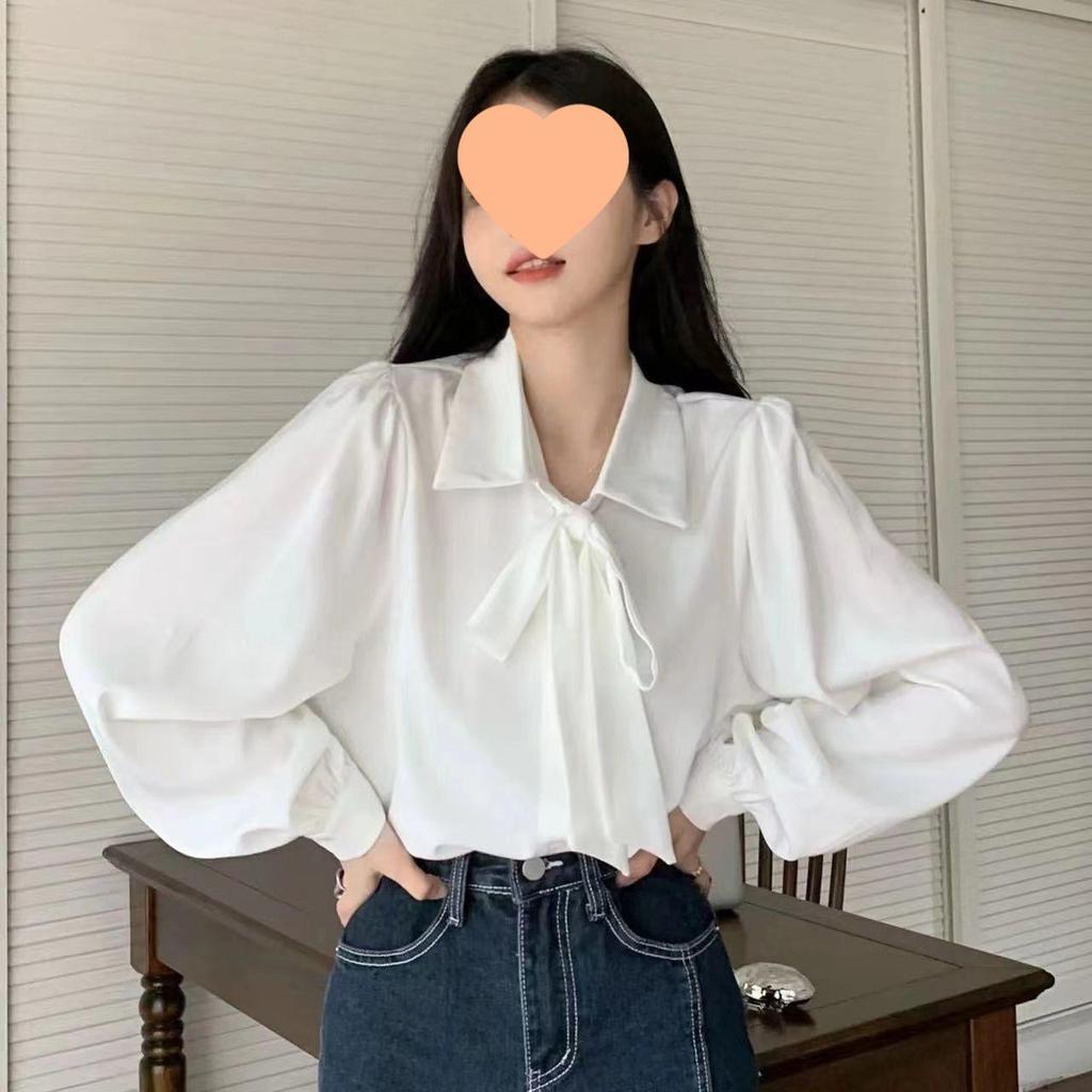 Elegant White Long-Sleeve Bow Tie Shirt for Women: French Loose Design, Suitable for Spring and Autumn