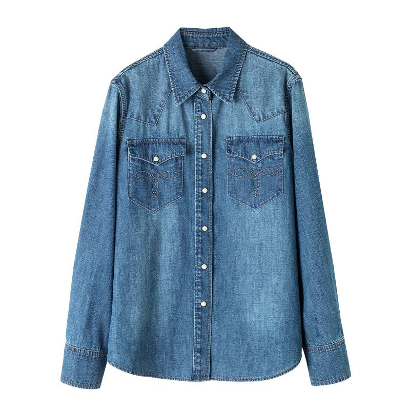 Introducing a stylish addition to your wardrobe from the 2026 Spring Collection, a women's loose casual denim shirt that effortlessly combines comfort and elegance. Crafted from high-quality denim cotton, this versatile piece features a solid pattern with no additional decorations, ensuring a classic and clean look. The long sleeves and turn-down collar add a touch of retro charm, making it perfect for layering or wearing solo. Experience the slimming silhouette and timeless appeal of this retro jacket, ideal for various occasions.