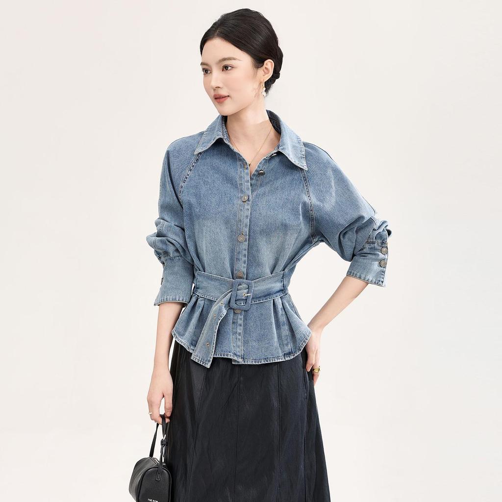 Experience timeless style with our High-Quality Retro Bleached Lace-Up Denim Shirt, designed specifically for the early spring season. This long-sleeved top is crafted from premium cotton material, offering both comfort and durability. Featuring a solid pattern and a uniquely tailored neckline, it brings a touch of elegance to your wardrobe. Perfect for pairing with your favorite jeans or skirts, this shirt offers a versatile and fashionable look for any occasion.