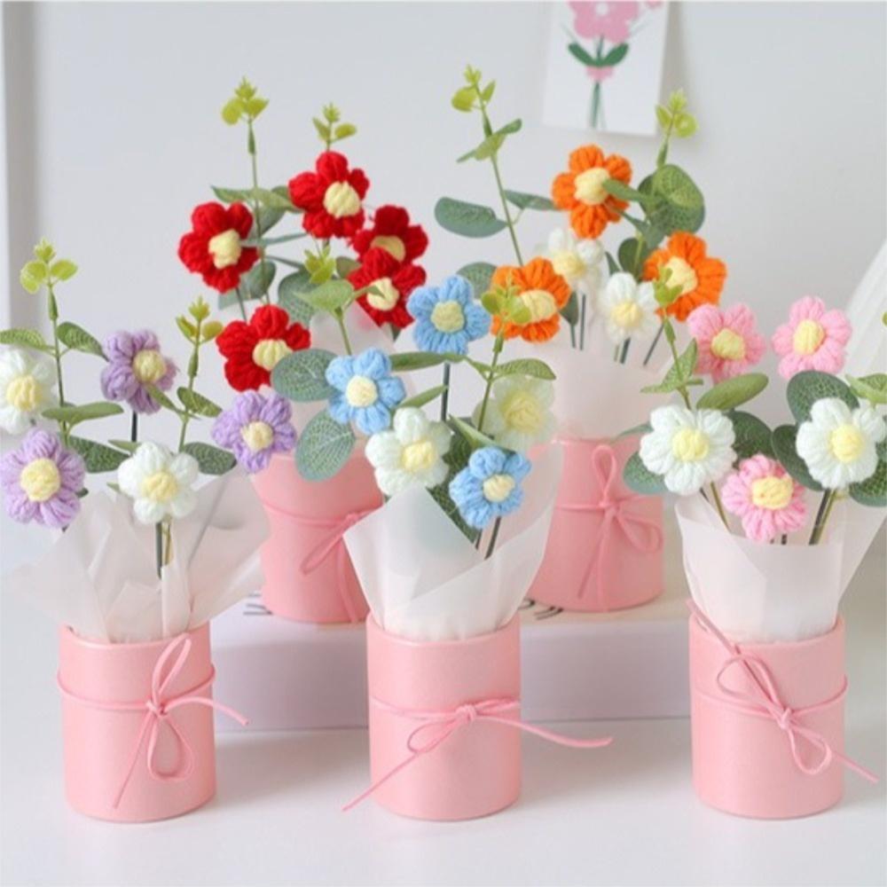 With Light String Crochet Flower Bouquet Artificial Flowers Decor Teacher's Day Gifts