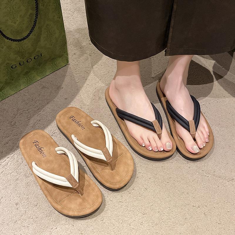 Large size flip-flops women's summer wear new flat-bottomed beach toe slippers soft-bottomed casual sandals