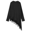 Asymmetrical Lace Top: Women's Black Fashion Shirt for Spring/Autumn - European & American Style