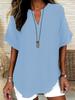 Women's Summer Loose Solid V-Neck Casual Shirt