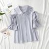 Elevate your wardrobe with this elegant women's blouse, perfect for any occasion. Crafted from high-quality polyester, this blouse features a charming ruffle doll collar that adds a touch of sophistication. The short sleeves and loose fit ensure comfort and ease of movement, making it an ideal choice for warm weather. The solid color design is enhanced by delicate patchwork and quilted detailing, adding subtle texture and style. Whether paired with jeans for a casual outing or dressed up with a skirt for a more formal event, this blouse is versatile and timeless.