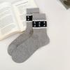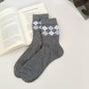Korean Style Mid-calf Socks Grey Checkered Boneless Pile Socks New Cotton Socks Spring Summer