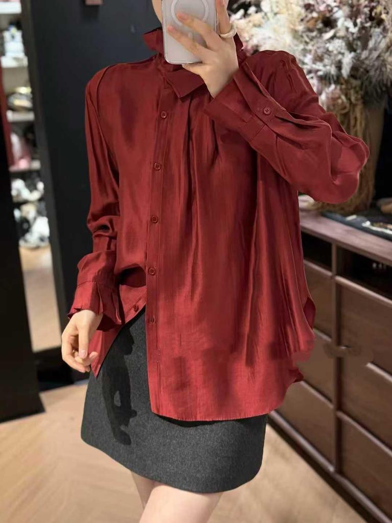 Discover timeless sophistication with this blouse, designed for the contemporary woman. Crafted from luxurious silk, this piece features a stunning brocade ruffle collar that adds a touch of elegance to any ensemble. Its solid pattern and long sleeves make it a versatile addition to your wardrobe, perfect for both formal and casual occasions. The loose fit ensures comfort without compromising on style, making it an ideal choice for a chic, effortless look. Embrace the essence of spring 2026 fashion with this exceptional blouse.