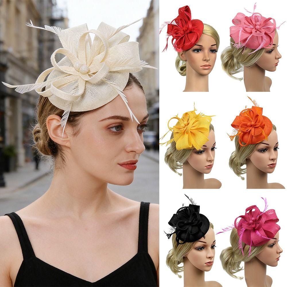 Feather Fascinator Caps Mesh Makeup Prom Elegant Hair Accessories Women