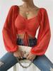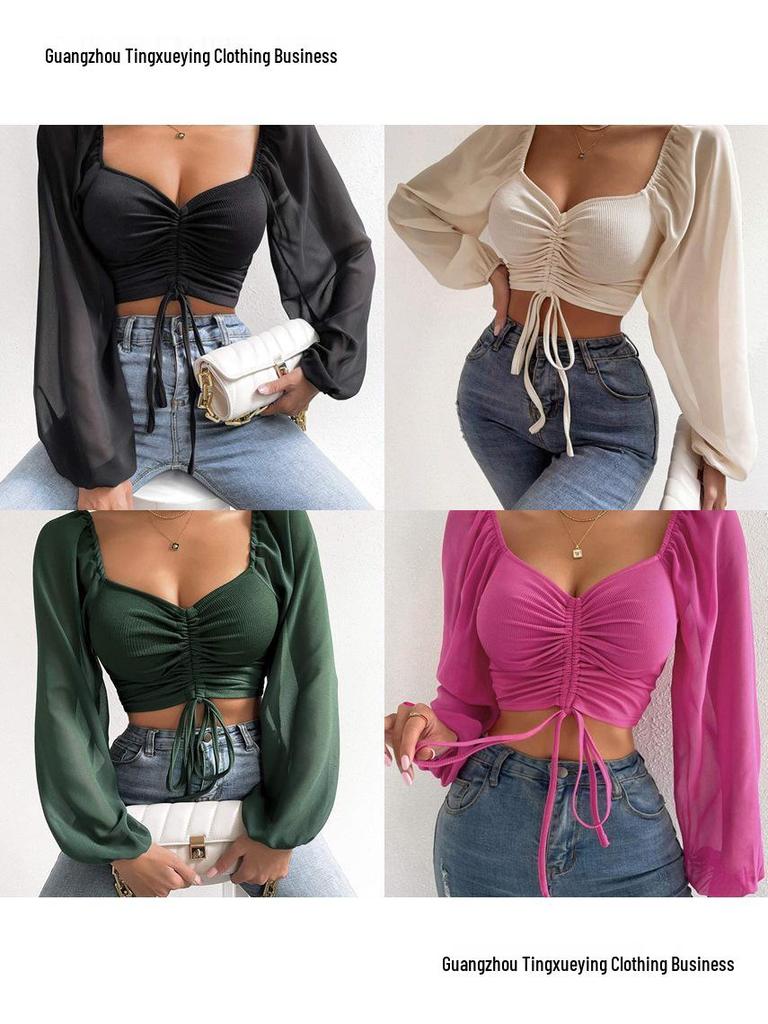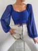 Summer V-neck Chiffon Lantern Sleeve Slim Fit Top