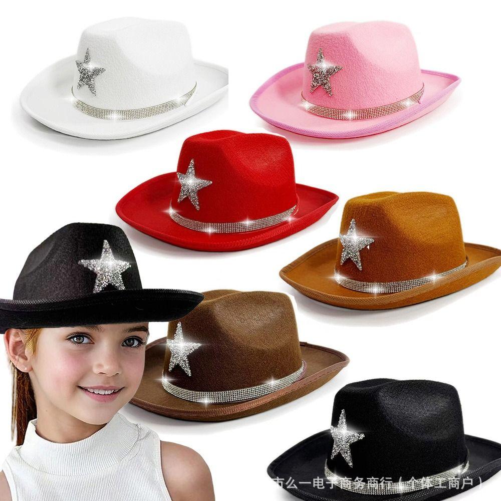 Product Description: This hat is an essential accessory for any child who attends a carnival, festival or Western themed event. The striking rhinestone five-pointed star design will surely make your kid stand out from the crowd. Made of lightweight and comfortable materials, this hat is perfect for all day wear. Its durable architecture ensures that it can last until all carnival games and parades. Finish your kids outfit and add some western flavor with this fun and festive hat! Perfect for expos, rodeo themed and carnival celebrations.