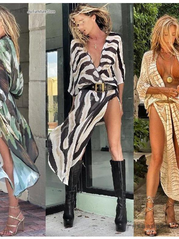 2026 Summer Plus Size Beach Chiffon Cardigan for Women - Printed, Sun Protection, Loose Fit for Vacation