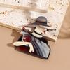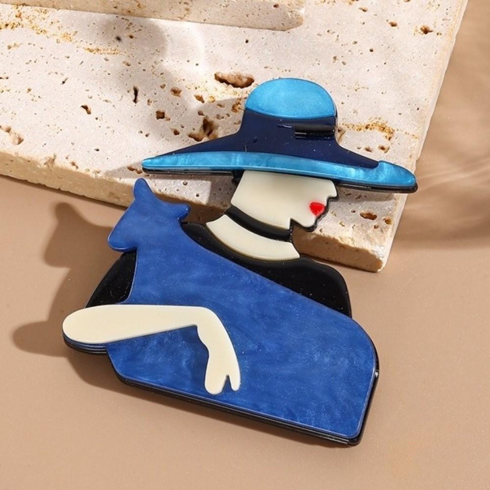 Acrylic Lady with Hat Brooch Cartoon Coat Badge Cute Women Portrait Pin Clothing Accessories
