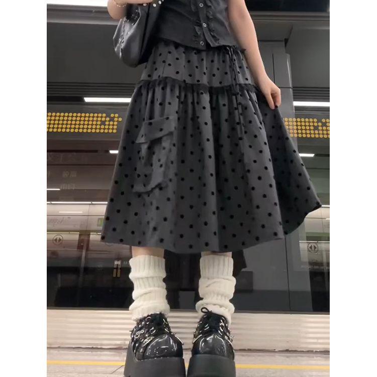 Retro Japanese A-line Layered Cake Skirt - High-Waisted, Lace Trim, Midi Length for Petite Women