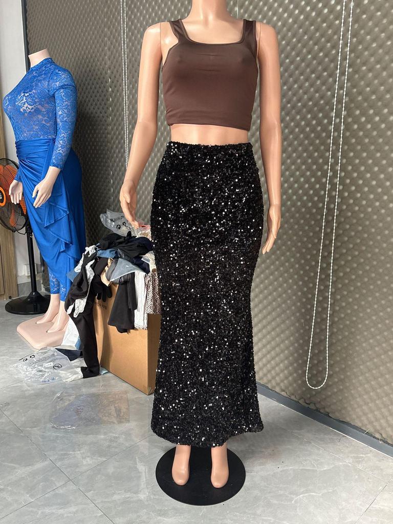 European & American Fashion Sequin High-Waist Midi Skirt for Women