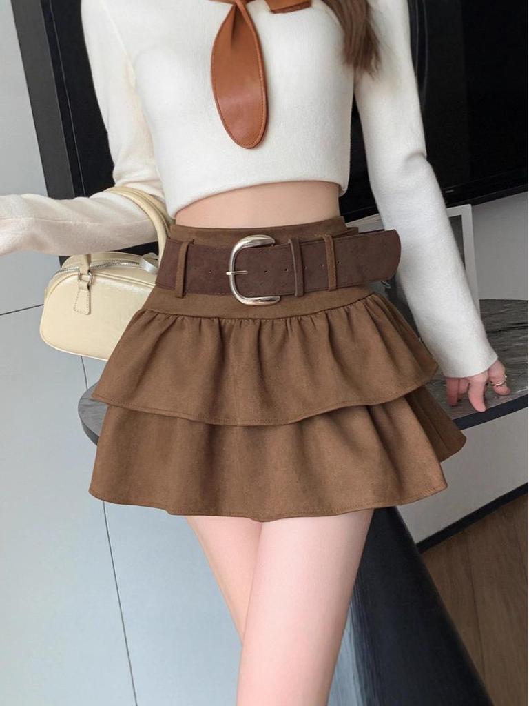 Air Layer Suede Plush High Waist Petite Slimming A-Line Skirt - 2025 Autumn/Winter Collection