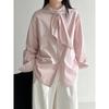 Luxi, Korean Design Sense Tie Solid Color Shirt Women's New Temperament Loose Casual Shirt