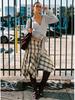 Plaid Patchwork High-Waisted Irregular Hem Midi Skirt