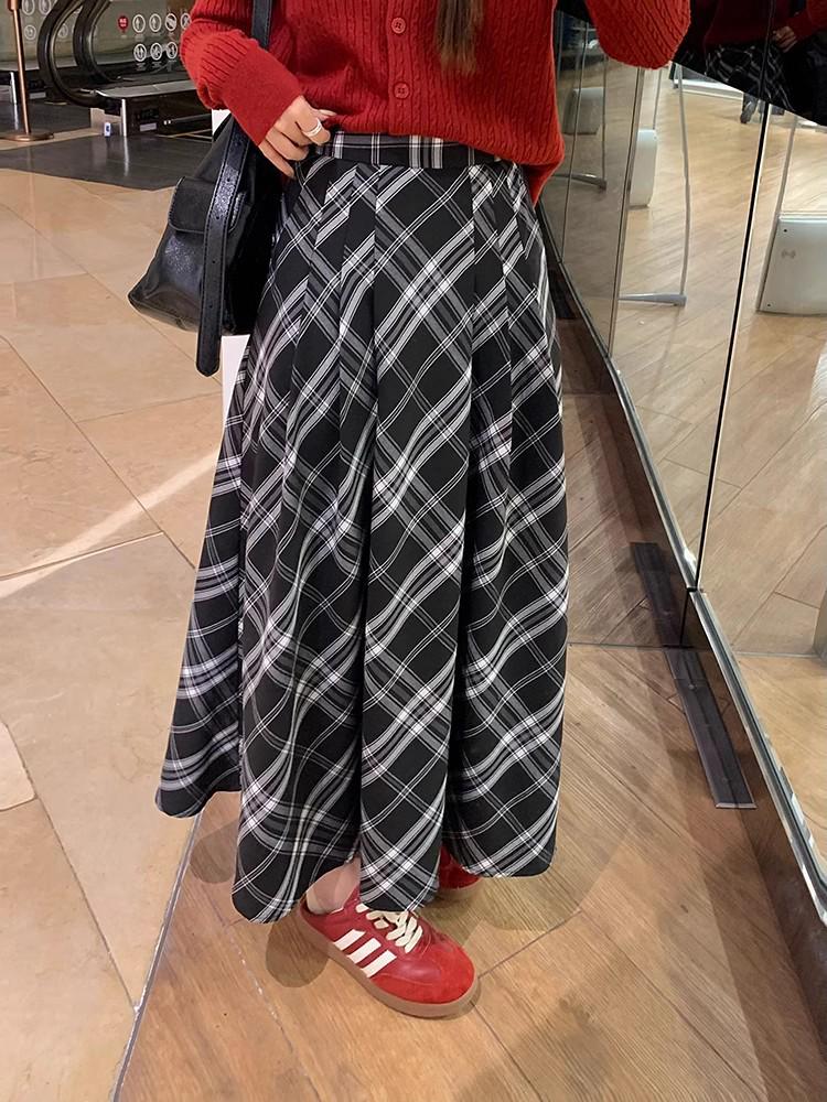 Women's Plaid Pleated Skirt - Slimming, Flaw-Hiding, Korean Style for Spring/Autumn 2025