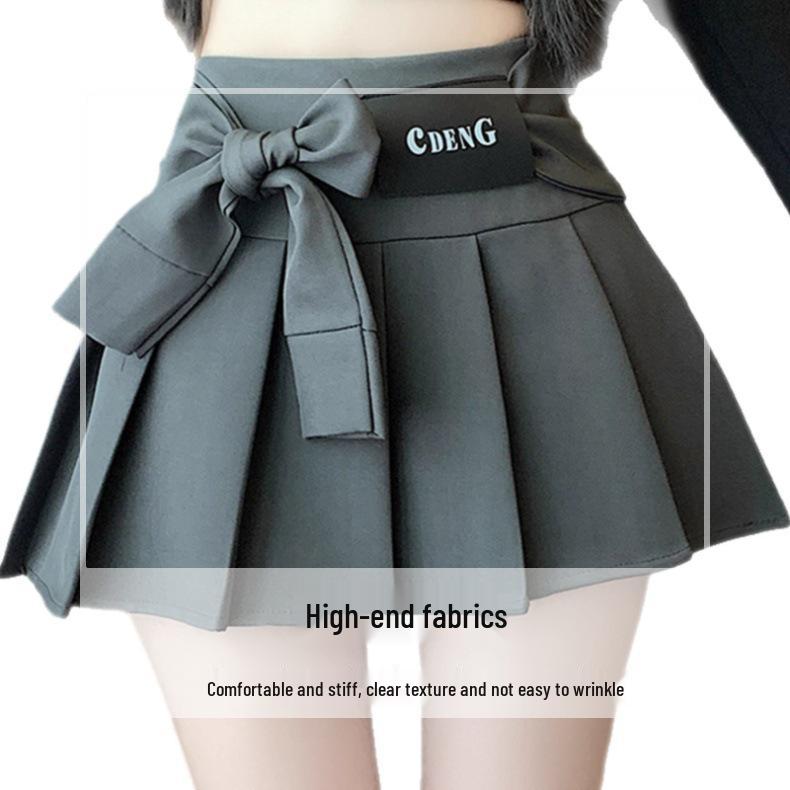 Discover a fashion-forward staple with this high-waisted pleated mini skirt for women, featuring a charming bow tie strap. Crafted from durable polyester, this versatile skirt offers a solid pattern that effortlessly complements any wardrobe. Designed for a slimming silhouette, it combines a modern academic style with practical anti-exposure features, making it perfect for a variety of occasions.