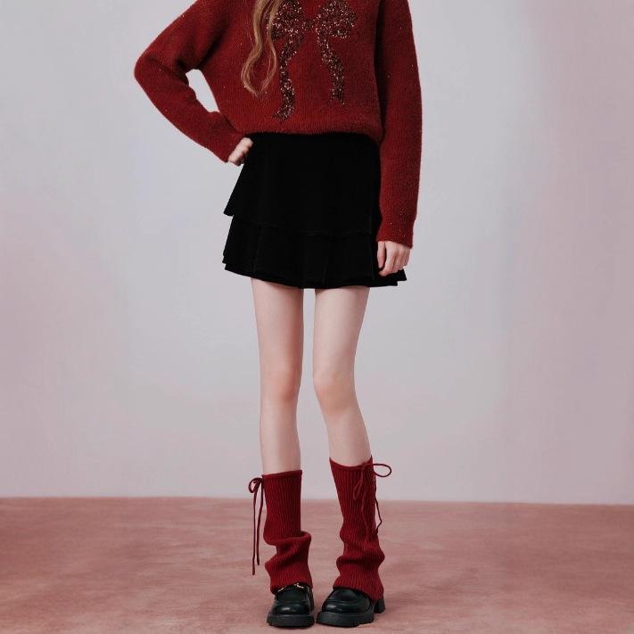Retro Velvet Pleated Cake Skirt - Women's Short Skirt, Spring 2026 Petite Christmas Collection, Style R96C011A