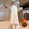 Discover timeless elegance with this high-waisted, slim-fit knit midi skirt, designed specifically for petite sizes. Crafted from luxurious knitted fabric, the skirt features a solid pattern that effortlessly elevates any outfit. The addition of plus velvet ensures warmth and comfort during cooler seasons, while its fashion-forward style makes it a versatile piece for any wardrobe. Perfect for both casual and formal occasions, this skirt is a must-have for those seeking a chic and sophisticated look.