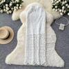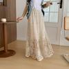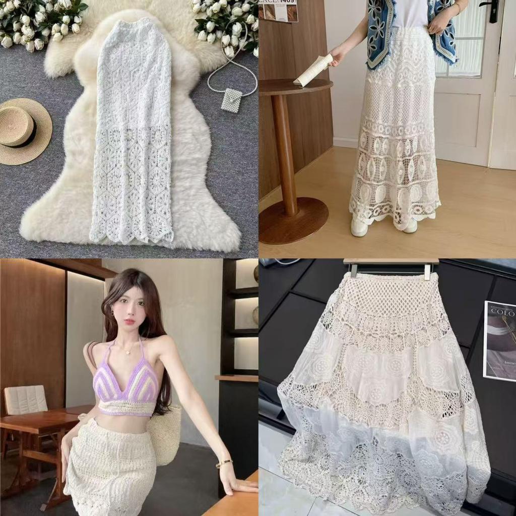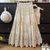 Bohemian Women's Resort Skirt: Korean-Style Embroidery, Crochet Knit, Drawstring Waist, Versatile Large Hem Hemline.