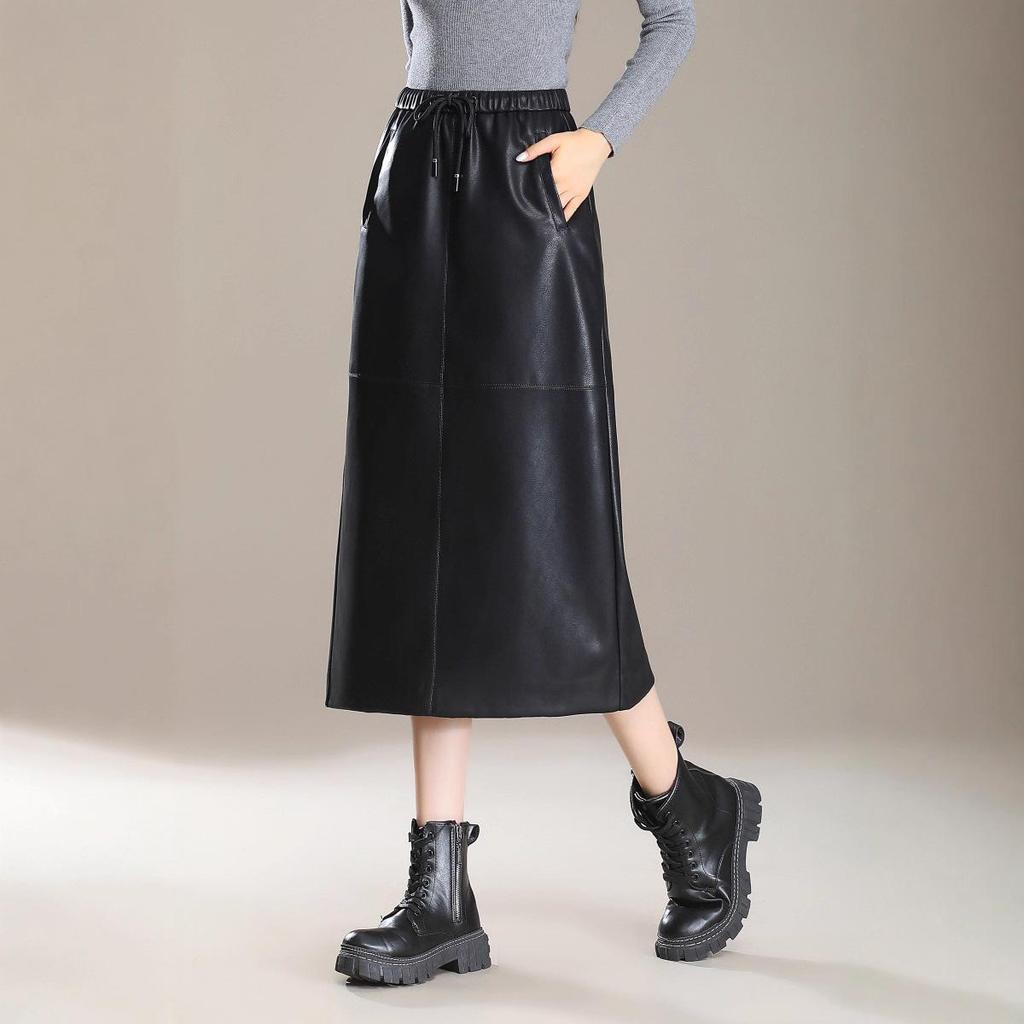 Introducing a sophisticated addition to your wardrobe: a sleek and elegant mid-length skirt crafted from premium lambskin. Designed with a subtle slit, this skirt effortlessly combines style and comfort for a fashionable high-end casual appearance. The soft sheep skin material provides a luxurious feel, while practical pockets add a touch of modern functionality. Perfect for any occasion where you want to make a chic and refined statement.