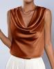 European & American Style Women's Satin Silk Sleeveless Pleated Top for Autumn