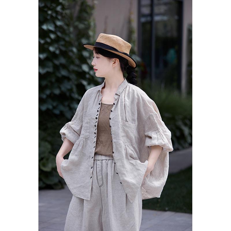 Summer Retro Slimming Linen Lapel Shirt for Women