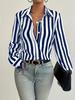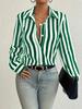 Striped Button-Front Women's Shirt: Loose, Slim-Fit, Retro, Versatile Top