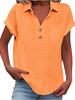 European Women's Cotton Linen Short Sleeve Lapel Button Shirt