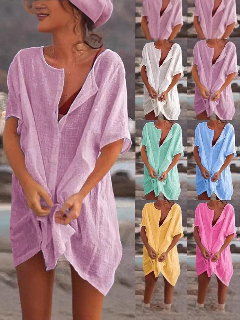 This stylish women's summer shirt is designed for both European and American tastes, offering a perfect blend of comfort and elegance. Crafted from polyester material, its solid color design makes it easy to pair with any outfit. The shirt features a loose fit, ensuring you stay cool and relaxed during warmer months. It has a classic round neckline and short sleeves, making it a versatile addition to your summer wardrobe. The tencel-blended material adds a touch of softness and breathability, providing an airy feel ideal for any casual or semi-formal occasion.