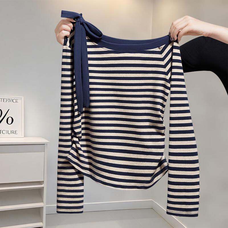 Ta Chi Women's Striped Off-Shoulder Long Sleeve Knit Top
