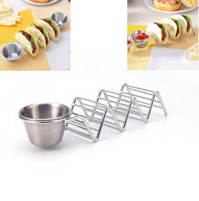 Paslanmaz Çelik Taco Tutucu Seti 2 Sos Kabı ile Taco Kabuk Tutucu Stand Taco Standı 3 Tortilla Tutar Mutfak Aleti