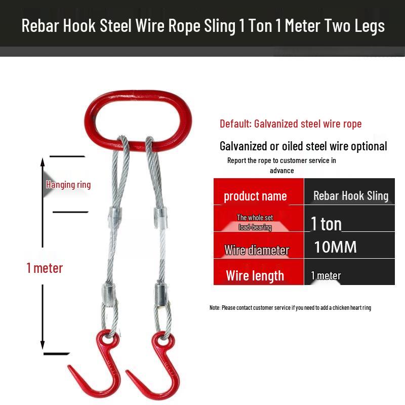 1 Ton 1 Meter Two-Leg Rebar Hook Wire Rope Sling